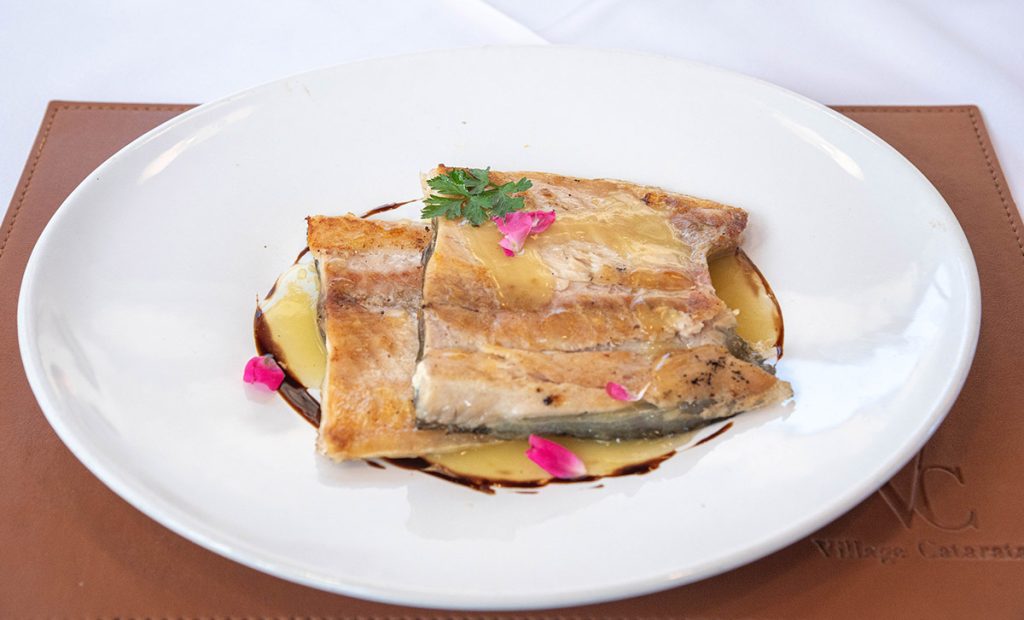 Surubí fish sautéed with vegetables, breaded by panco and served with tartar sauce.